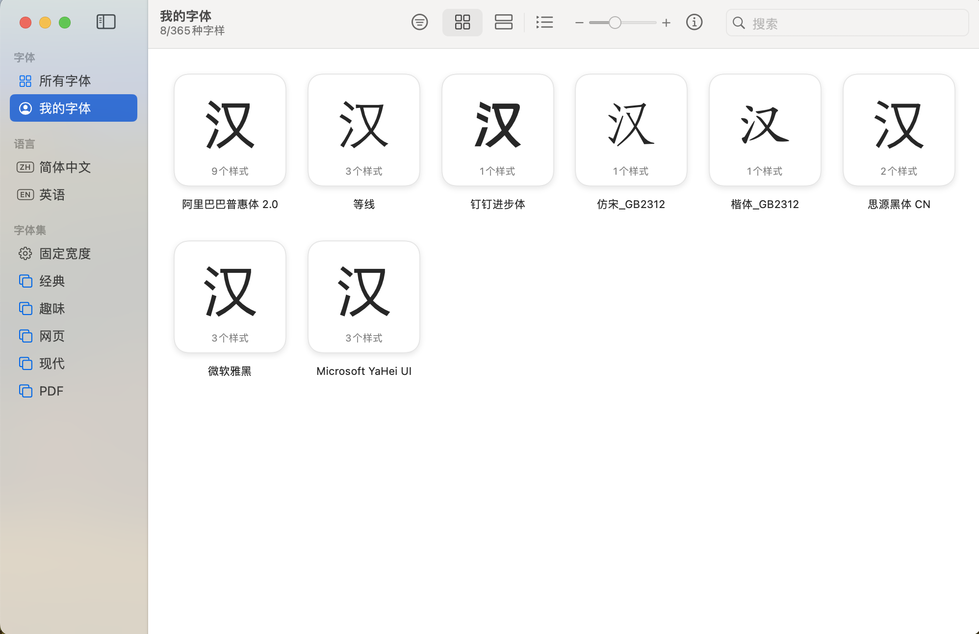 Macos字体选择Windows常用字体日常办公等线 微软雅黑 思源黑体 楷体_GB2312 仿宋_GB2312*1:其中国标楷体及仿宋取自知乎用户毛远济的回答,详见知乎链接 *2:其余取自Windows11系统自带汇报排版字体钉钉进步体 阿里巴巴普惠体*取自官网,以上均为免费商用安装方法下载链接:Github下载后打开字体册程序,拖动字体进入我的字体界面中即可。 Upload fonts